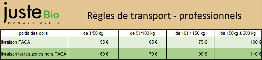 Pour les commandes inférieures à ce montant, les frais de livraison varient selon le département de destination et le nombre de colis expédiés.