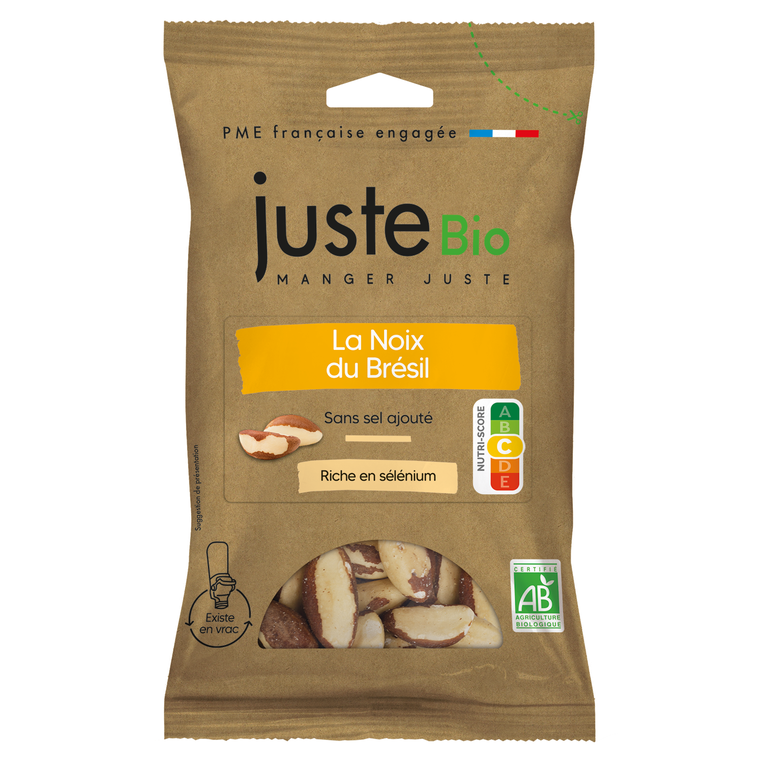 Pour répondre à tous les instants de consommation, JusteBio propose également une gamme de 24 références en sachets, pratiques à emporter partout avec soi. Grâce à nos sachets entièrement recyclables en filière papier, vous pouvez glisser vos produits préférés dans un sac, pour vous accompagner dans tous vos déplacements, puis les jeter dans les poubelles adaptées.